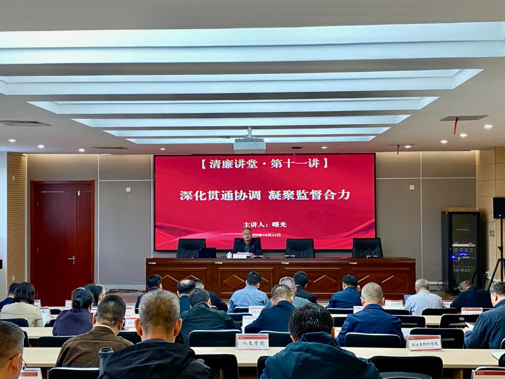 10月24日,学校纪委在新城校区明德楼第三报告厅,举办了“清廉讲堂”第十一讲,院处级党委党总支书记、纪检委员及相关部门负责人共计50余人参加会议。